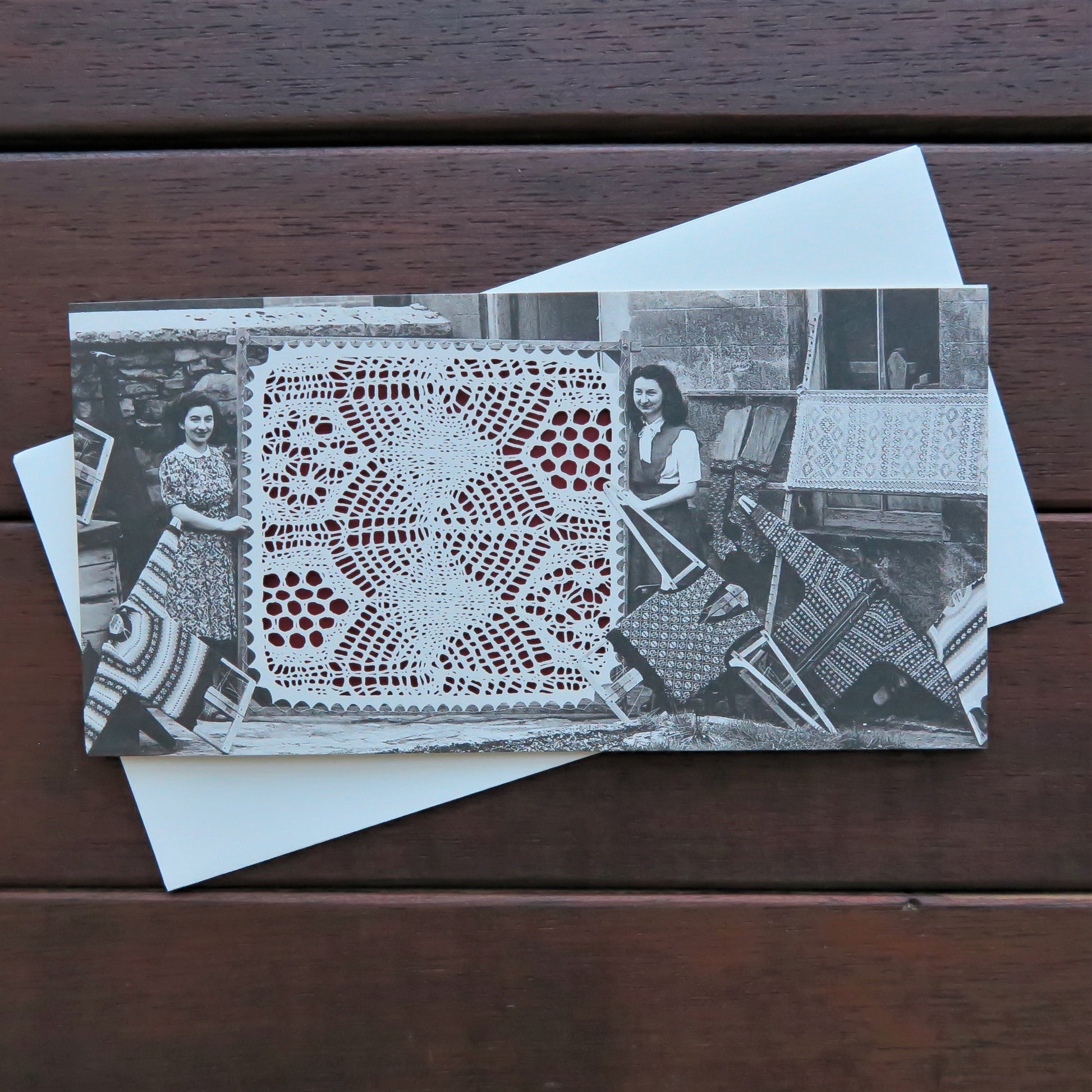 Square greetings card, blank inside allowing for your own message, showing an image from the Shetland Museum & Archives photo database on the front. Printed in Shetland. Envelope included.