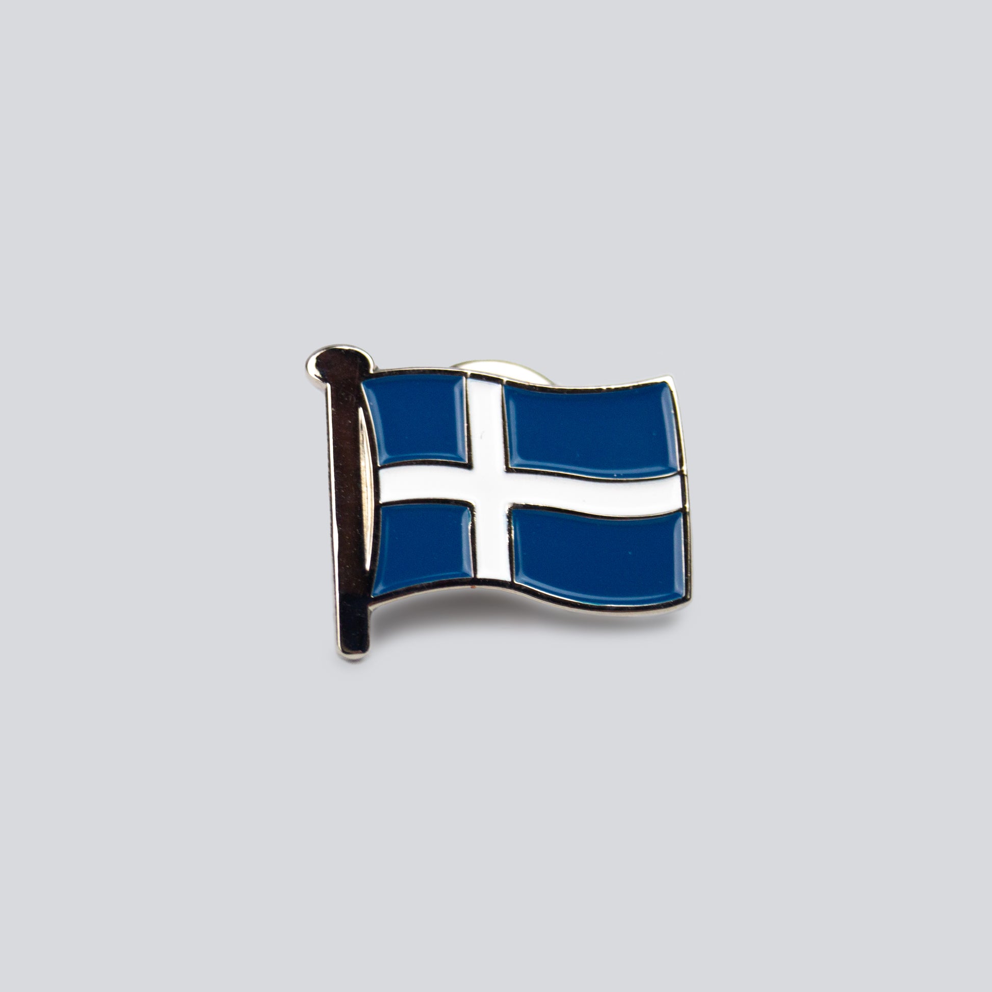 A little Shetland flag pin with metal clutch backer.