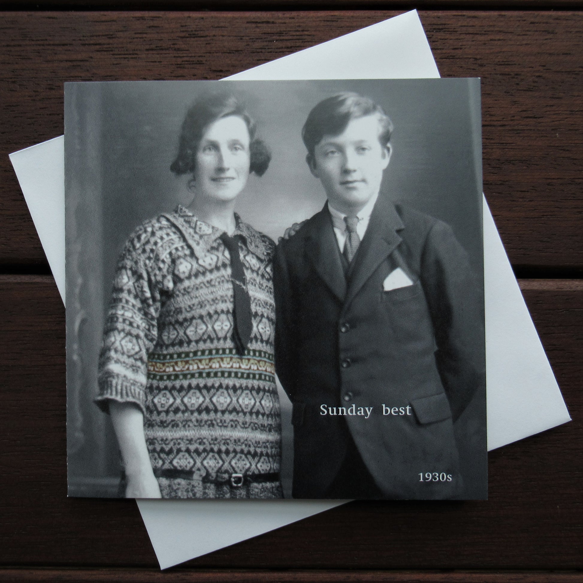 Square greetings card, blank inside allowing for your own message, showing an image from the Shetland Museum & Archives photo database on the front. Printed in Shetland. Envelope included.